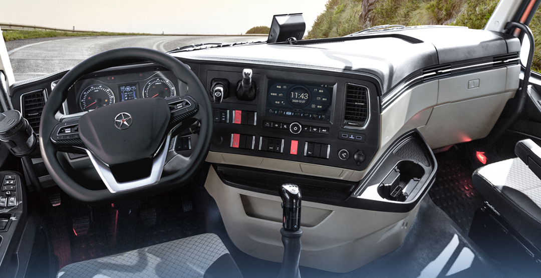 重卡驾乘舒适能有效降低驾驶疲劳感,这也是“以车为家”的卡友较为看重的一点。尊龙凯时N9H3.0配置了环抱式搪塑仪表台,半岛式仪表台设计搭配哑光质感按键,全局操控触手可及,兼具科技外观与品质触感;充满科技感的10.1寸全触控高清智慧大屏,可与蓝牙、接听电话、娱乐多媒体、导航、手机互联、行车记录仪交互等功能兼容,进化为智能出行控制中心,营造舒适智能的交互体验,让卡友在车上也能畅爽娱乐!
